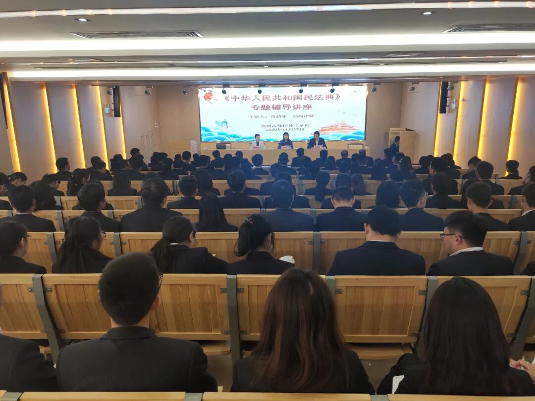 2020年11月27日,曾韵冰律师应惠州市仲恺技工学校的邀请到该校为全体教职员工宣讲《民法典》。