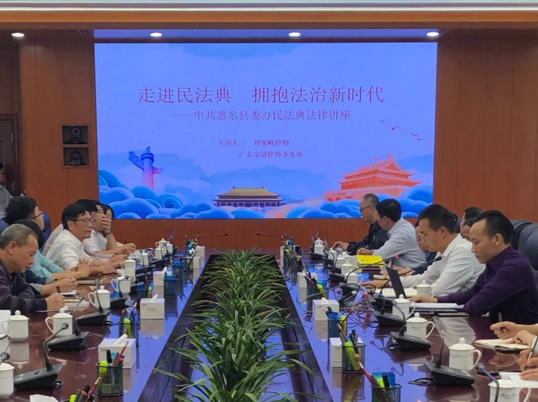 2020年11月13日,刘家峰律师受邀为中共惠东县委办宣讲《民法典》。