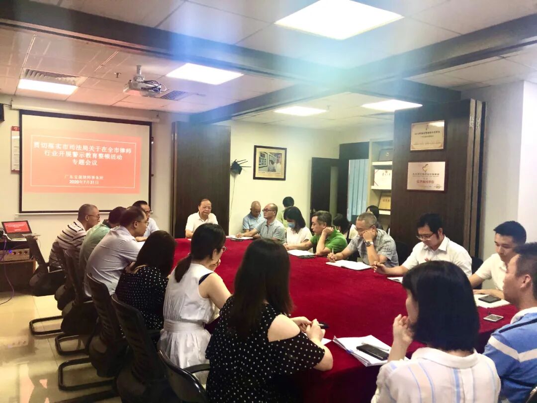 2020年7月31日,广东宝晟律师事务所为积极响应市司法局下发的《关于在全市律师行业开展专项警示教育整顿活动的实施方案》,根据文件精神组织开展整顿警示教育专题学习会,本次学习会由律所主任刘湖森主持,律师事务所全体同仁参加此次学习。