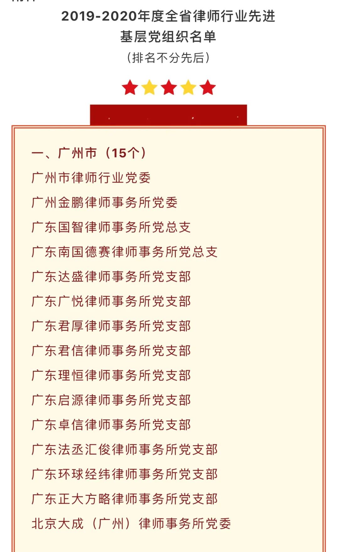 广东宝晟律师事务所党支部荣获“2019-2020年度全省律师行业先进基层党组织”称号,广东宝晟律师事务所曾韵冰律师荣获“2019-2020年度全省律师行业优秀党务工作者”称号。