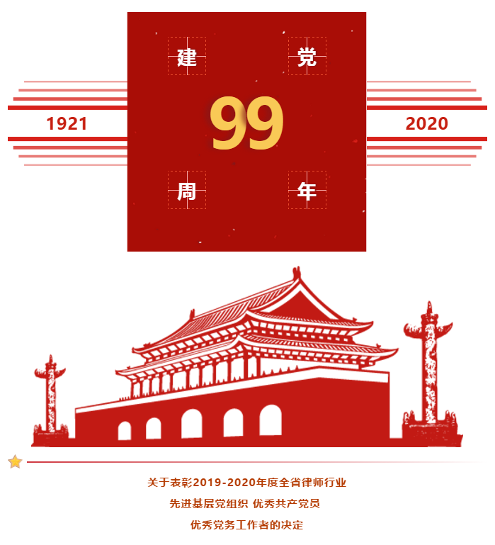 为纪念建党99周年,充分发挥律师行业先进典型的示范带动作用,激励全省律师行业各级党组织和广大党员履职尽责创先进、立足岗位争优秀,近日经各市律师行业党组织推荐,省律师行业党委研究决定,对先进基层党组织、优秀共产党员、优秀党务工作者予以表彰。