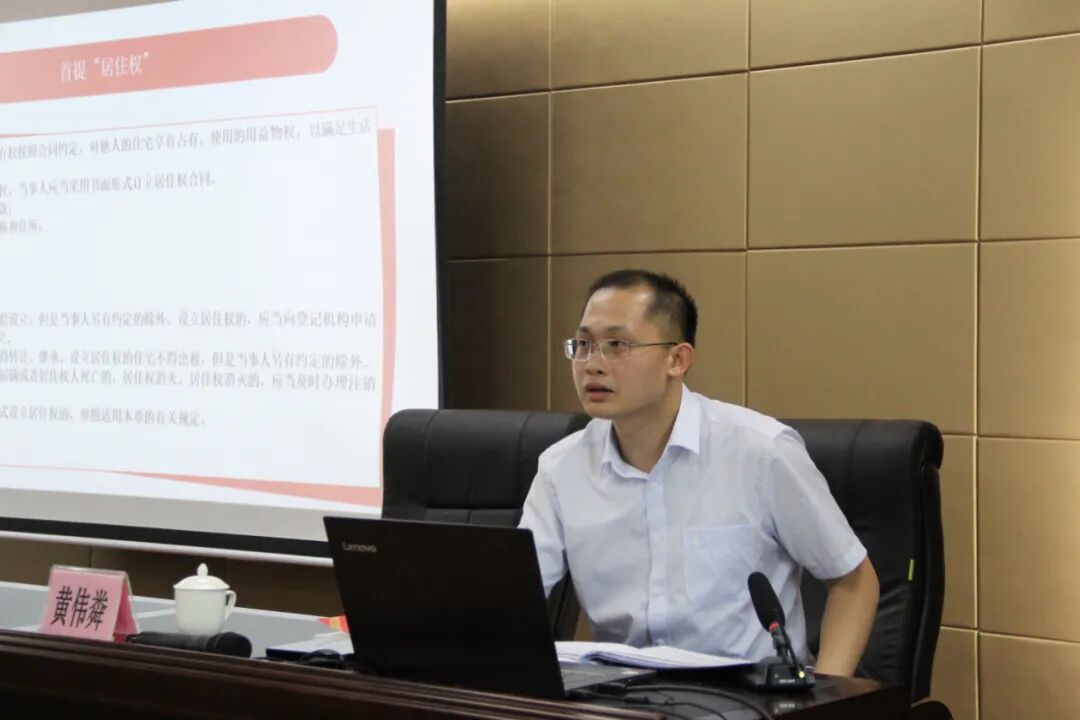 讲座中,黄伟粦律师分别介绍了民法典编纂的历史背景、重大意义、主要亮点。同时,结合监察法、刑法等法律法规的贯通执行,列举了大量案例,从纪检监察机关履职尽责及刑民交叉案件处理等角度,详细分析了民法典对纪检监察工作的影响和新要求。讲座内容充实,旁征博引,让大家对民法典有了更深刻的理解。