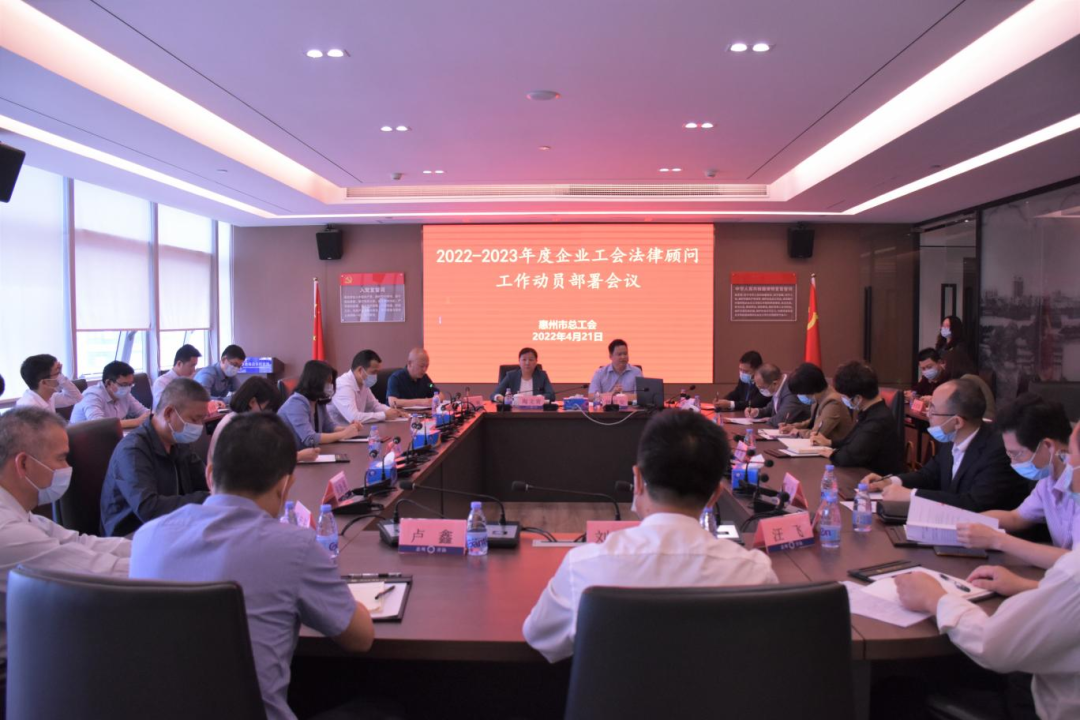 2022年4月21日下午,惠州市总工会联合市律协、市律协公共法律服务工委在市律协会议室召开2022-2023年度企业工会法律顾问工作动员部署会议,惠州市各县(区)工会、全市13家承接企业工会法律顾问的律师事务所派员参加会议。