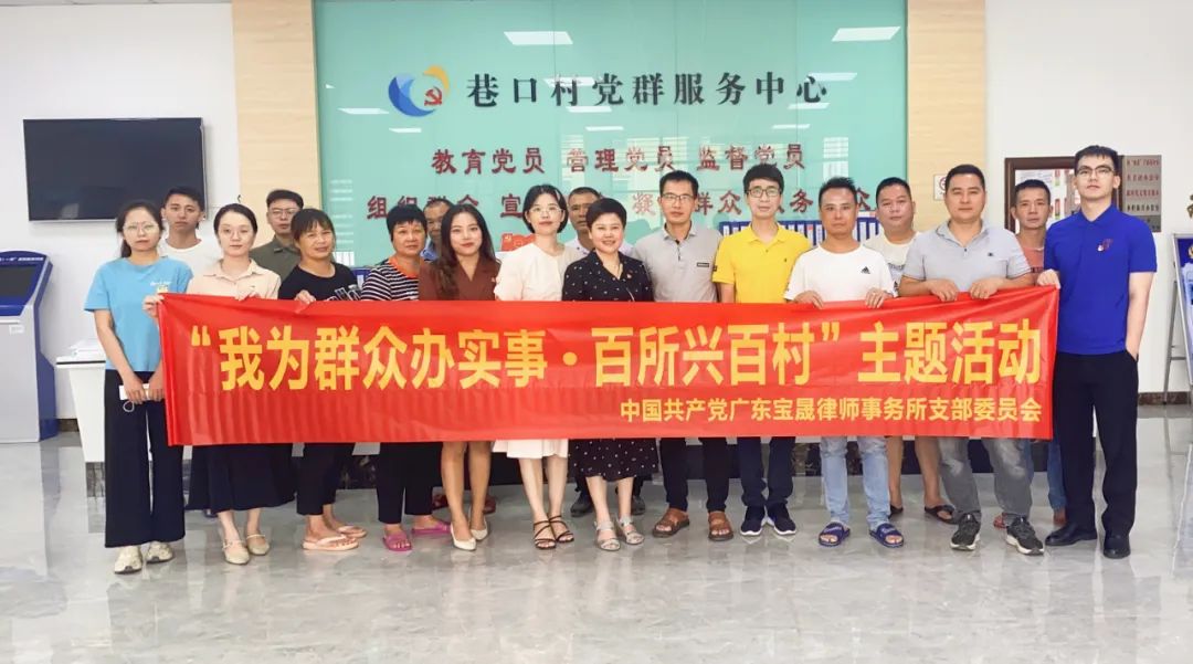 为进一步提高政治站位,强化责任担当,2022年9月7日上午,中共广东宝晟律师事务所支部委员会一行再次到惠州市博罗县罗阳街道巷口村推深做实“百所兴百村”活动。