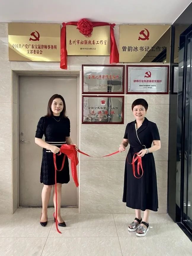 2022年7月28日上午,惠州市妇女联合会曾韵冰执委工作室在广东宝晟律师事务所举行了揭牌仪式。市妇联党组成员、挂职副主席杨潇潇、市妇联四级调研员刘顺桃和市妇联执委、广东宝晟律师事务所党支部书记曾韵冰及其工作室成员受邀并出席了该仪式。