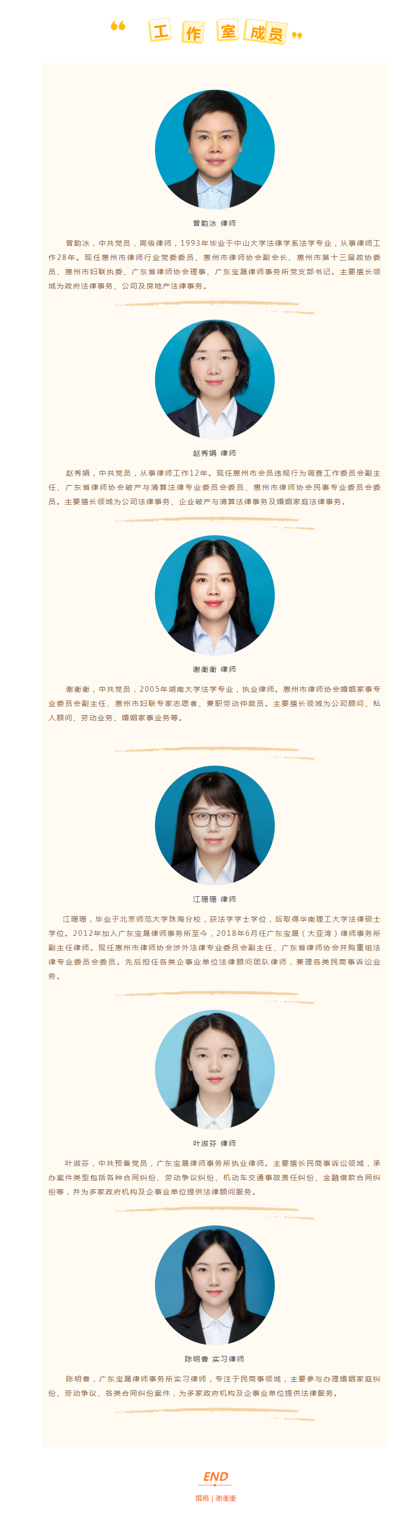 曾韵冰表示,妇联执委是各行各业优秀女性的代表,是参与妇联工作的重要力量,是党和妇女群众之间沟通的关键桥梁。建立妇联执委工作室是进一步引导执委更好地发挥引领、联系、服务妇女作用的平台,充分调动做妇女群众工作的积极性、主动性和创造性,发挥各自专业特长和资源优势。执委工作室成立后,不仅仅是工作室的成员们,我们将会延伸到惠州其他律师事务所,吸纳更多优秀的女律师,通过设立服务点的方式,发挥执委工作室的辐射作用,扩大“学法、守法、懂法、用法”的普及面,更好地服务广大妇女群众。