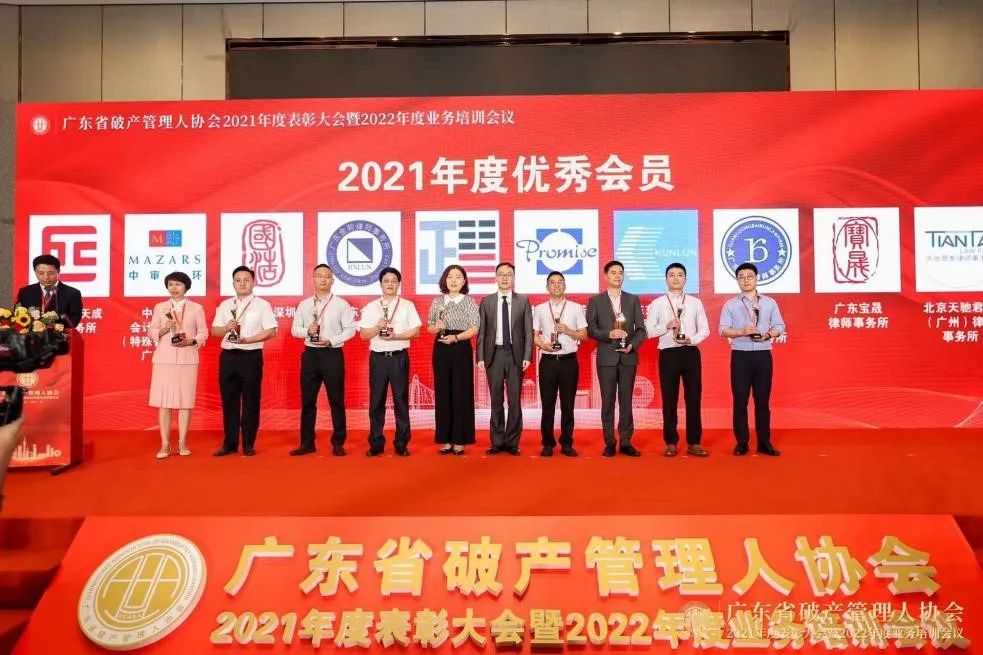 8月7日,“广东省破产管理人协会2021年度表彰大会暨2022年度业务培训会议”在广州召开,会上对2021年度在具体案件以及具体服务中、在行业管理中、在理论研究和实践创新等方面作出重大贡献、取得优秀成绩的机构/个人评为优秀会员并进行了表彰,广东宝晟律师事务所荣获“2021年度优秀会员奖”。我所破产清算与重整业务部成员翁敏腾律师代表前往领奖。